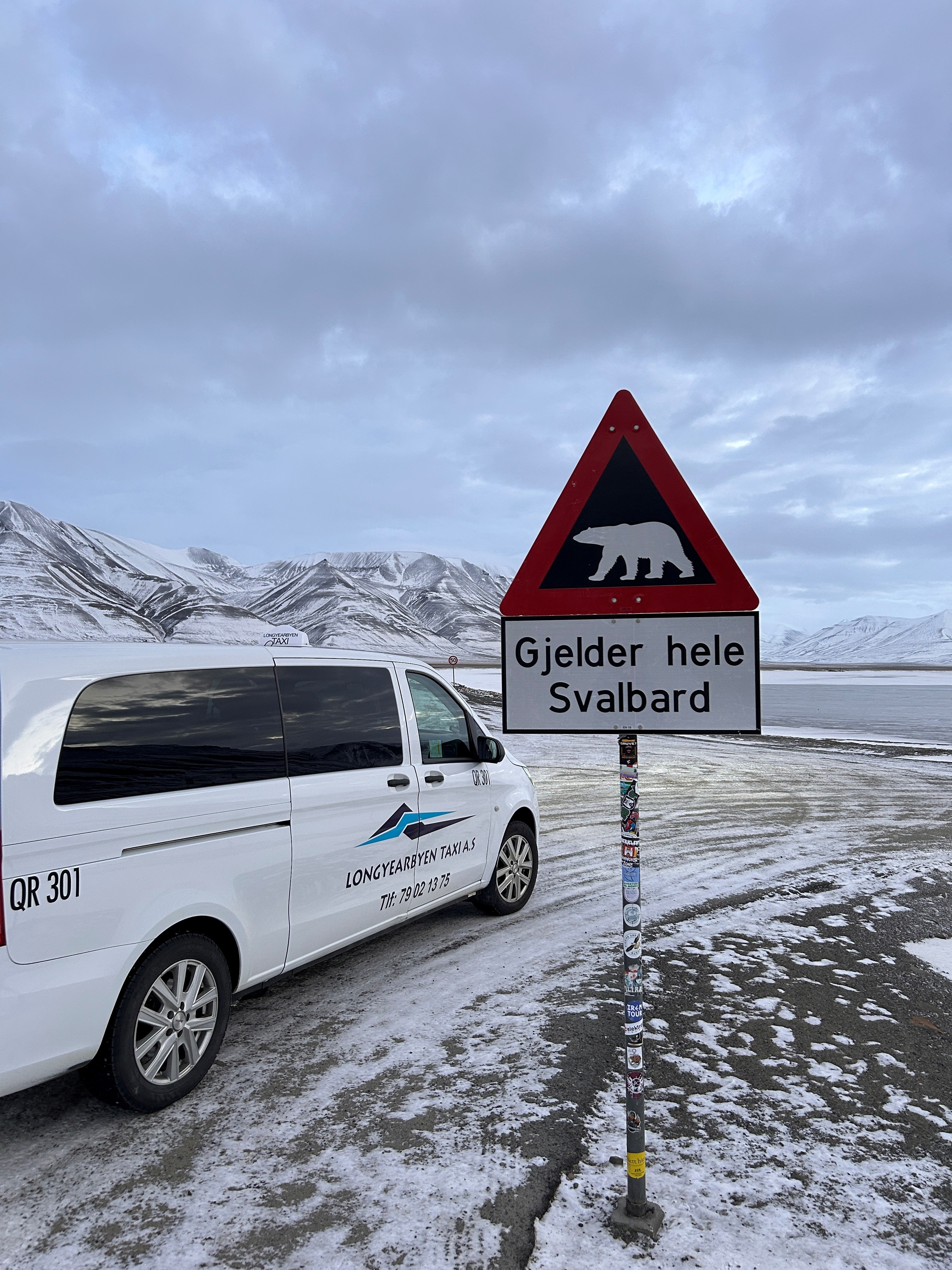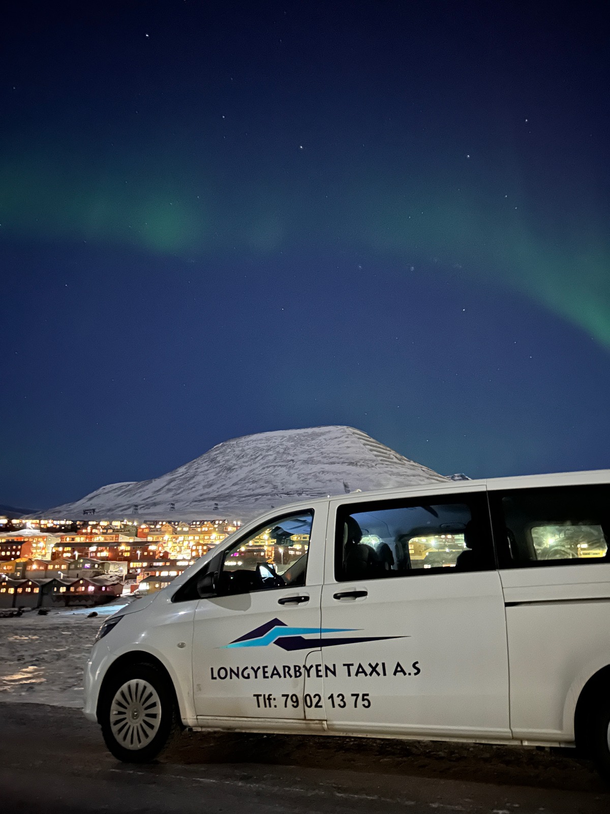 Gjesten må være nær bilen og følge instruksjonene fra drosjesjåføren når man er utenfor sentrum av Longyearbyen